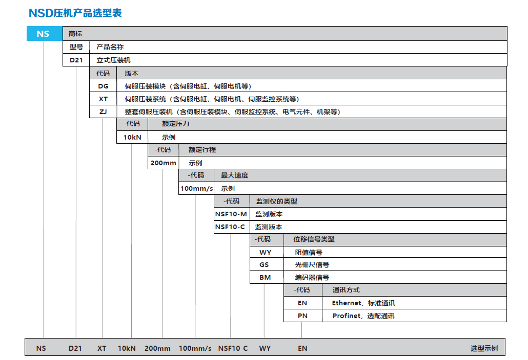 NSD21由伺服電缸、伺服電機(jī)、伺服驅(qū)動(dòng)器、NSF10監(jiān)測儀、力和位移傳感器、結(jié)構(gòu)件、框架等主要部件構(gòu) 成。各部件之間采用模塊化設(shè)計(jì)的理念,可方便地組配出客戶所需的產(chǎn)品。