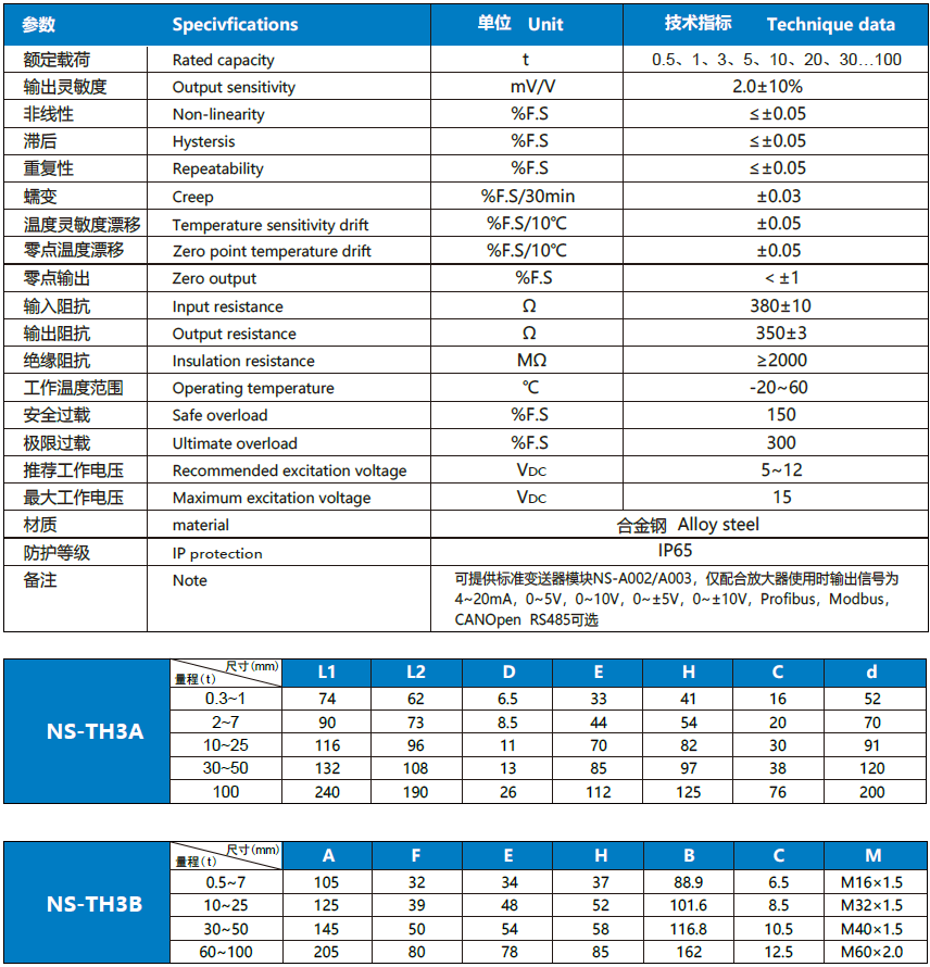 NS-TH5 系列稱重傳感器,采用優(yōu)質(zhì)鋁合金制作;