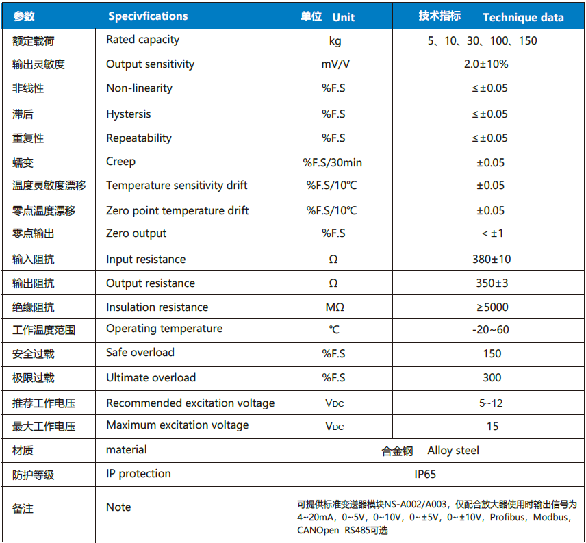 NS-TH4 系列稱重傳感器采用懸臂剪切結(jié)構(gòu);