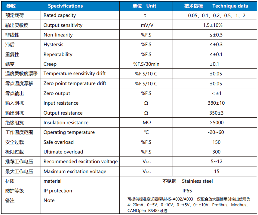 NS-WL2系列傳感器采用柱型剪切結構;