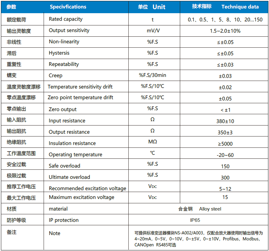 NS-WL1 系列傳感器采用 S 型剪切結構;