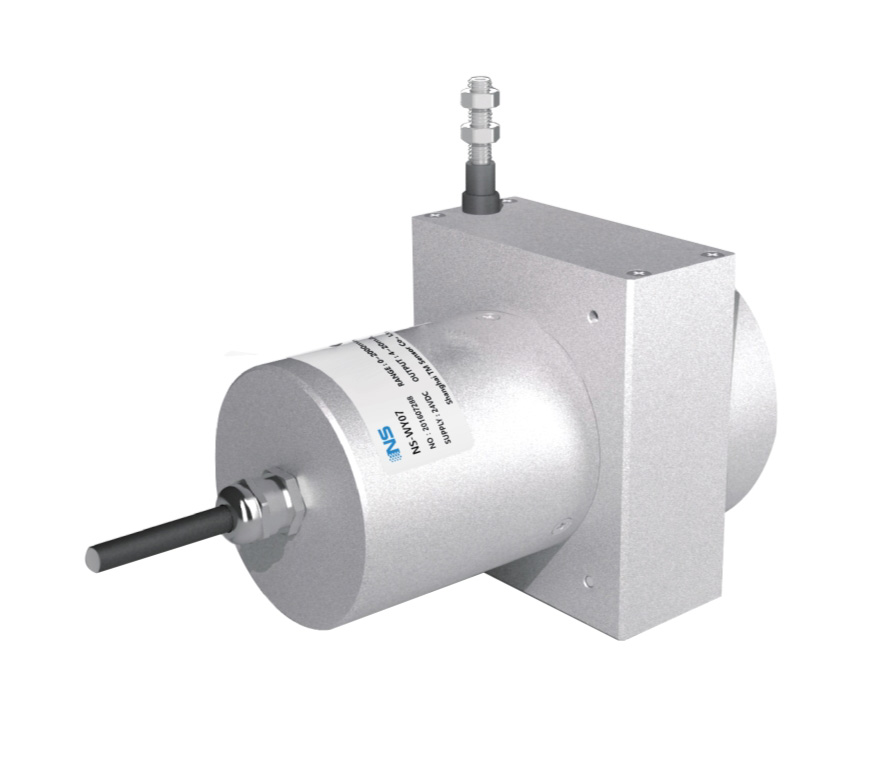 操作上,拉繩位移傳感器安裝在固定位置上,拉繩縛在移動物體上。拉繩直線運動和移動物體運動軸線對準。運動發(fā)生時,拉繩伸展和收縮。一個內(nèi)部彈簧保證拉繩的張緊度不變。帶螺紋的輪轂帶動精密旋轉(zhuǎn)感應(yīng)器旋轉(zhuǎn),輸出一個與拉繩移動距離成比例的電信號。測量輸出信號可以得出運動物體的位移、方向或速率。