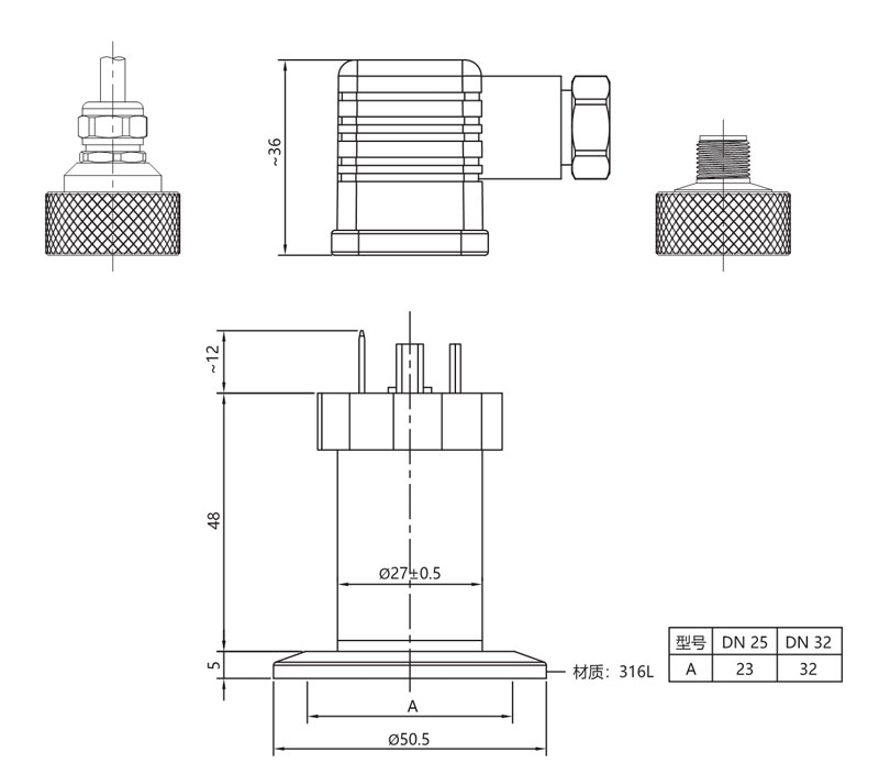 標(biāo)準(zhǔn)DN25、DN32,2寸卡箍型式可選