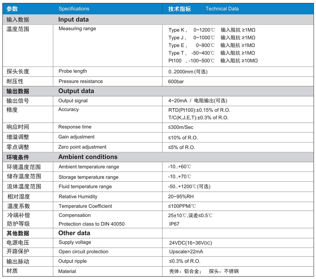 適宜于安裝在裝配式溫度傳感器無法滿足要求場合和環(huán)境比較惡劣的場合